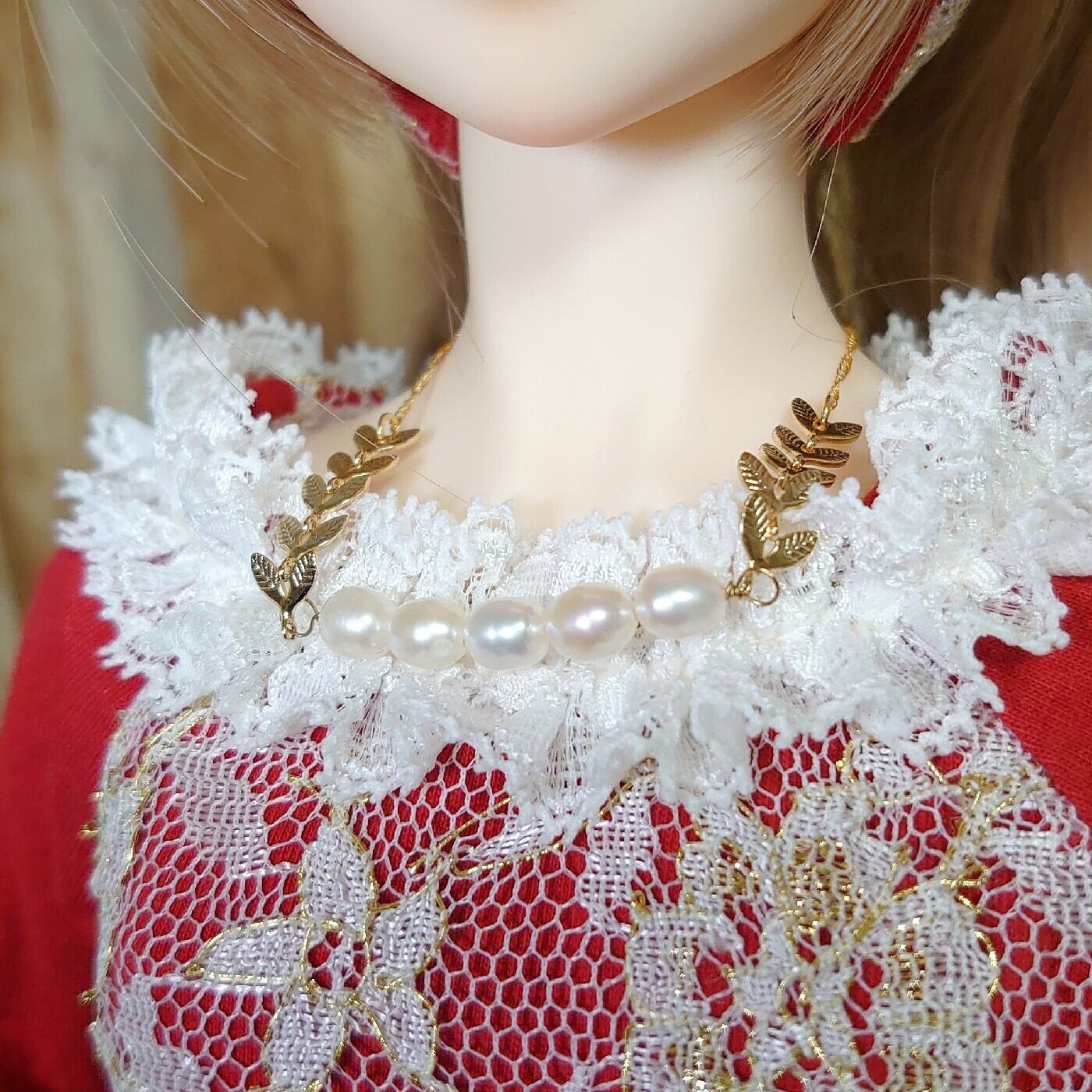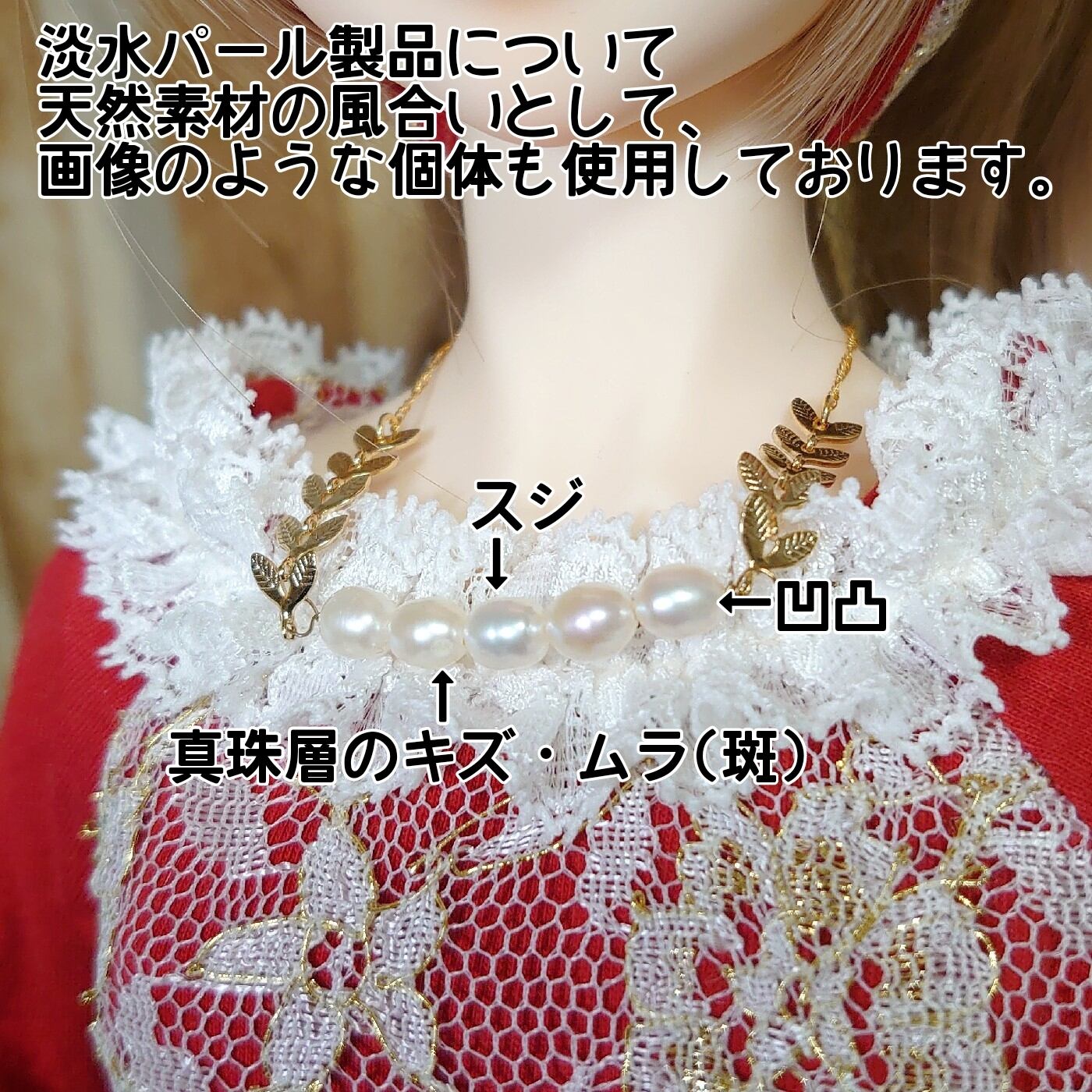 春の息吹き 淡水パールとリーフチェーンネックレス(ドール用)