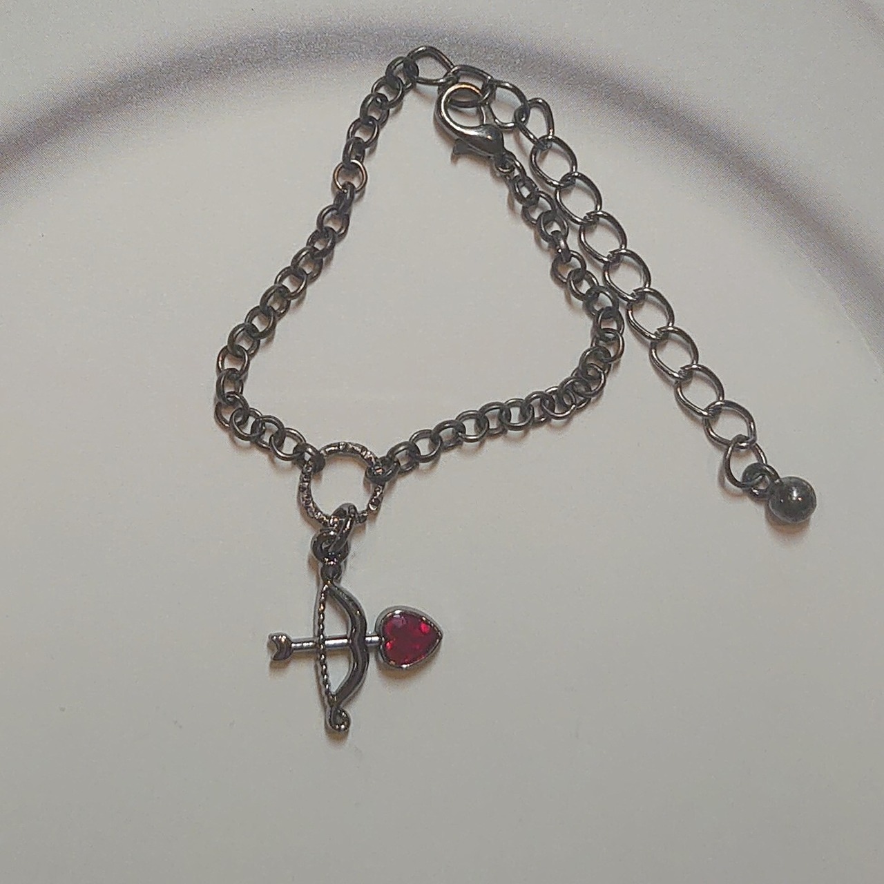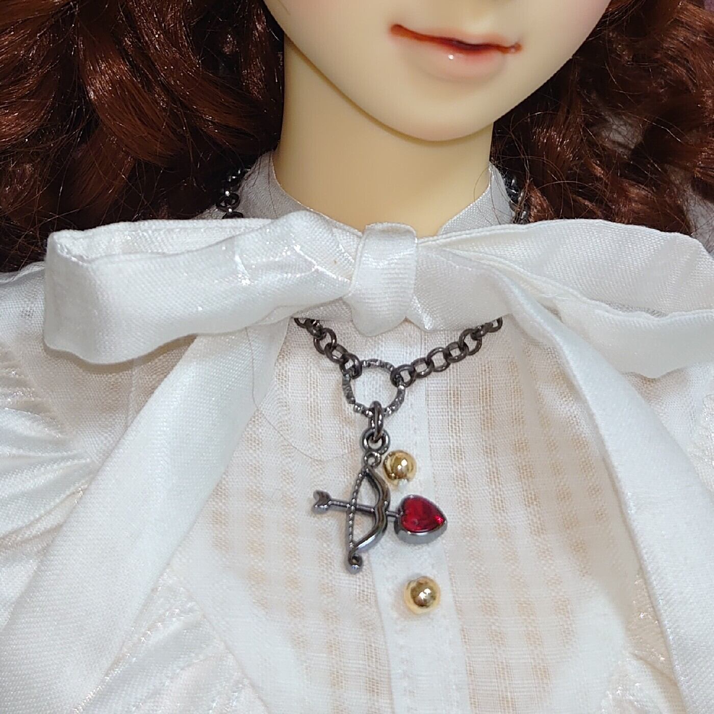 ブラックボウにかけられた真っ赤な矢じりがポイントのチャーム。