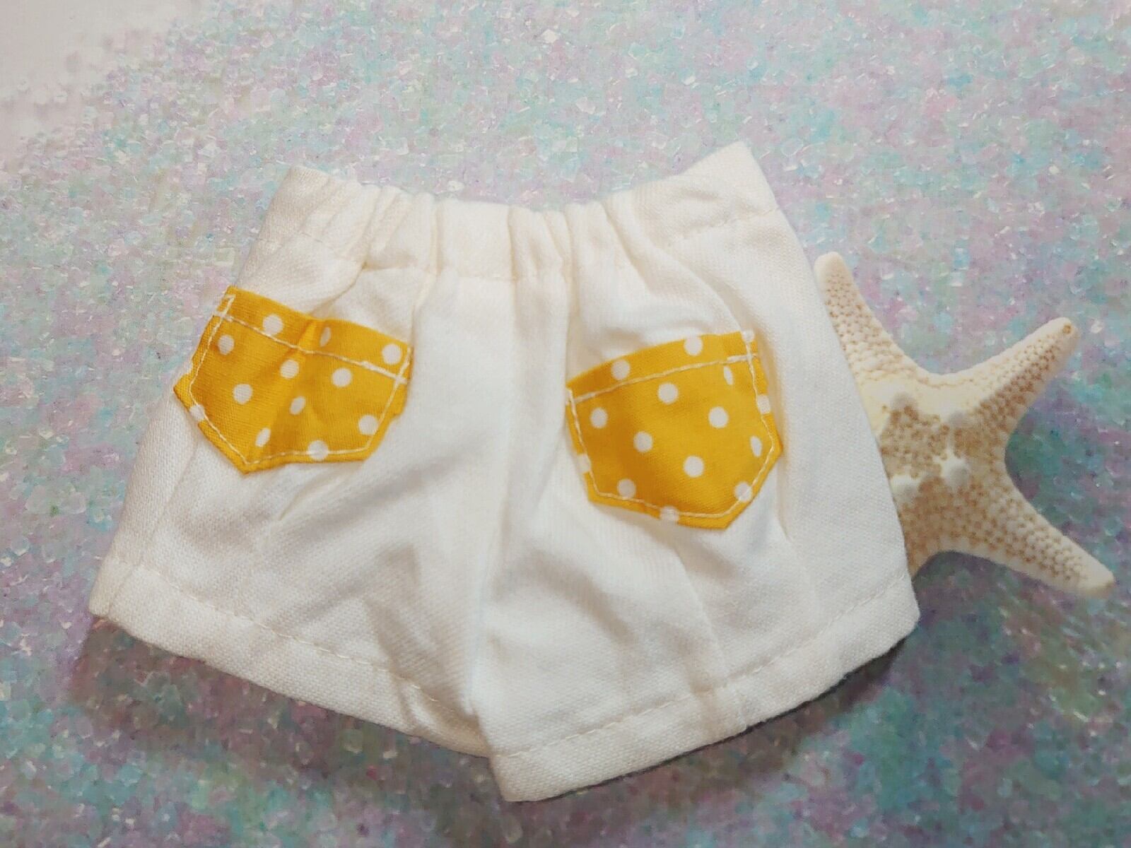 後ろポケット付き(柄は共布または黄色地に白ドット:ランダム封入)