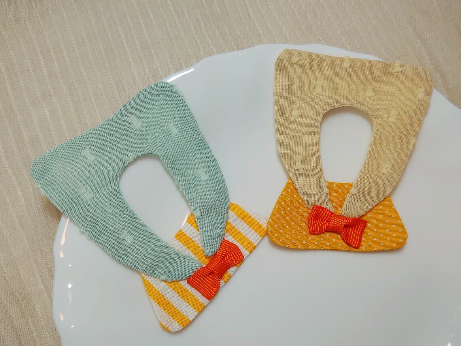 お食事を楽しむんまほっぺさんたちに、お食事用ビブ(エプロンドレス)を製作してみました。