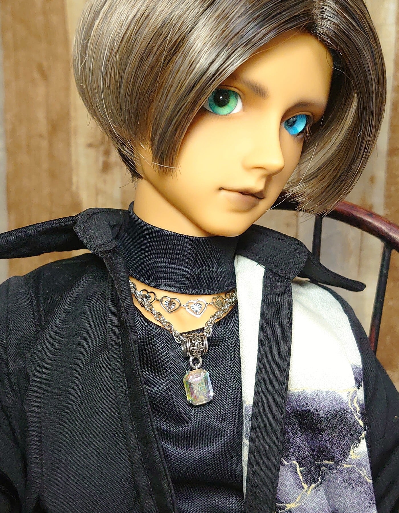 ロープチェーンが首もとに力強い印象を与えます。