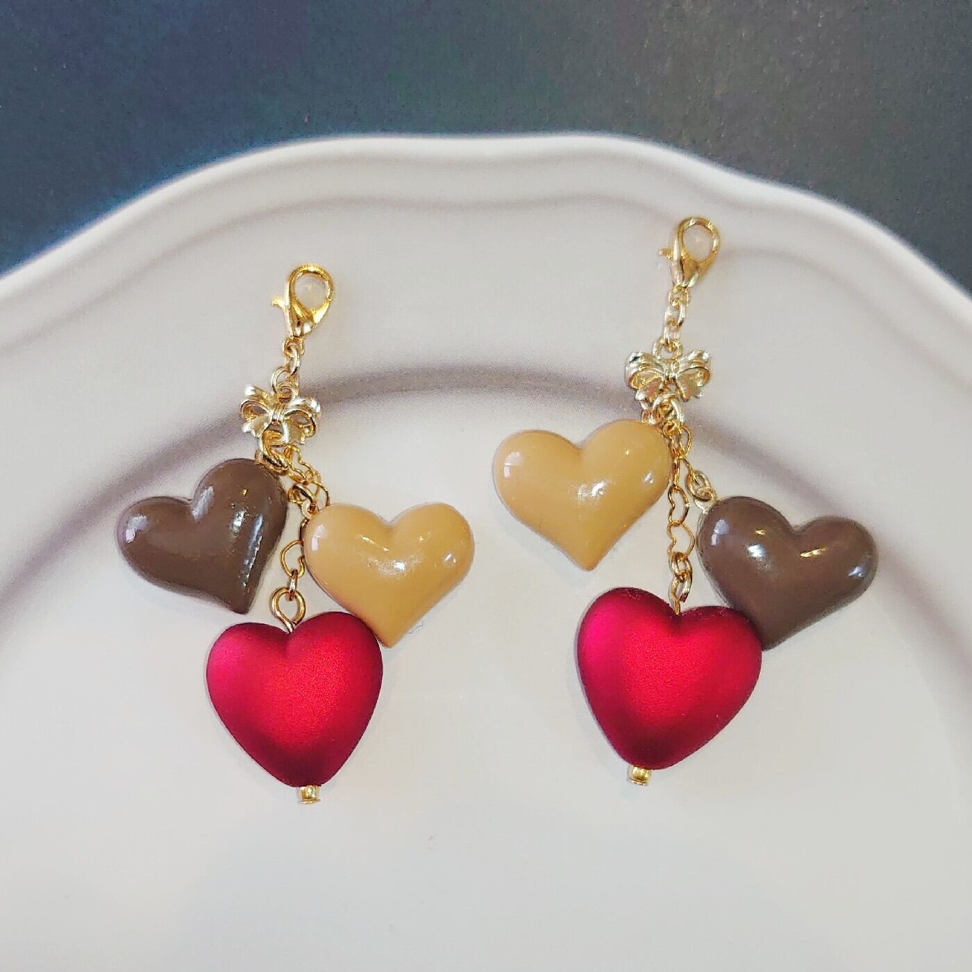 チョコレートモチーフのデコレーションパーツを使用した、バレンタインチョコをイメージしたアクセサリーチャームです。