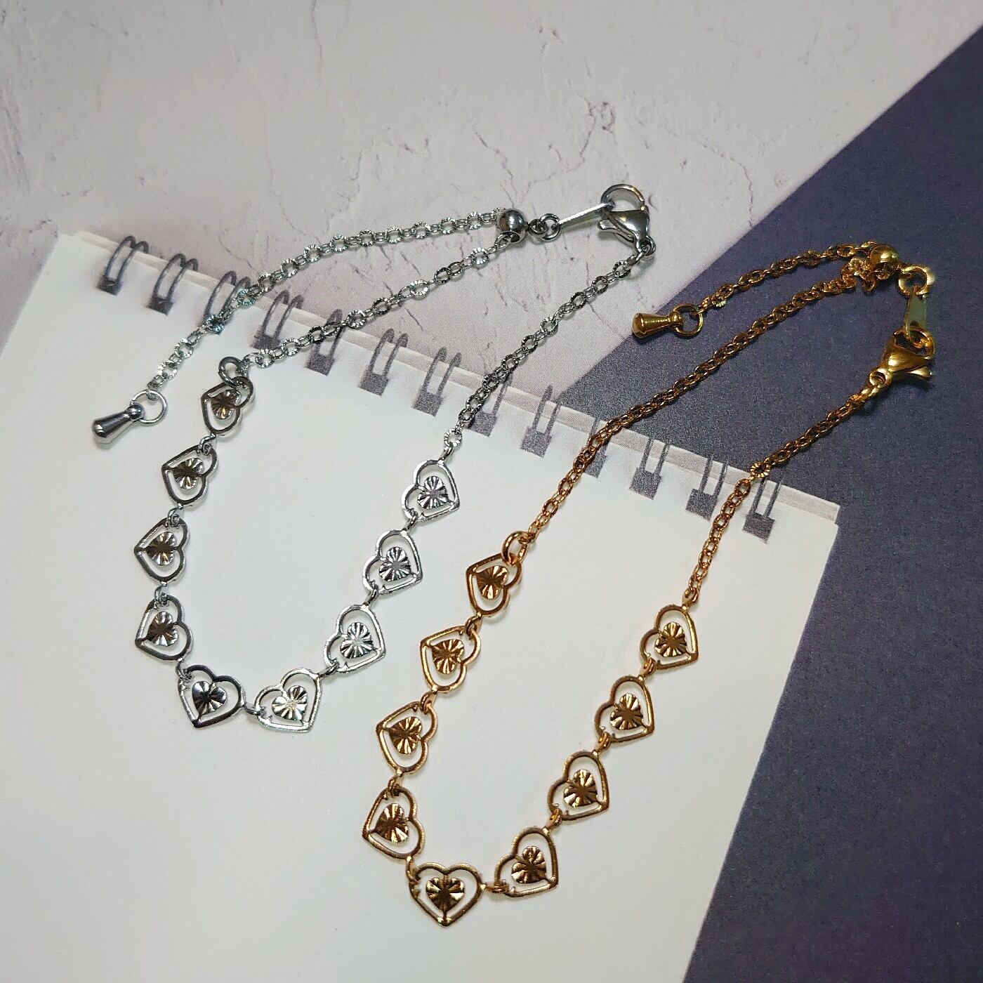 心の真ん中、心中から発するエネルギーを感じるような、力強いハートたちのチェーンを使用したドール用ネックレス兼オーナーさま用ブレスレットです。