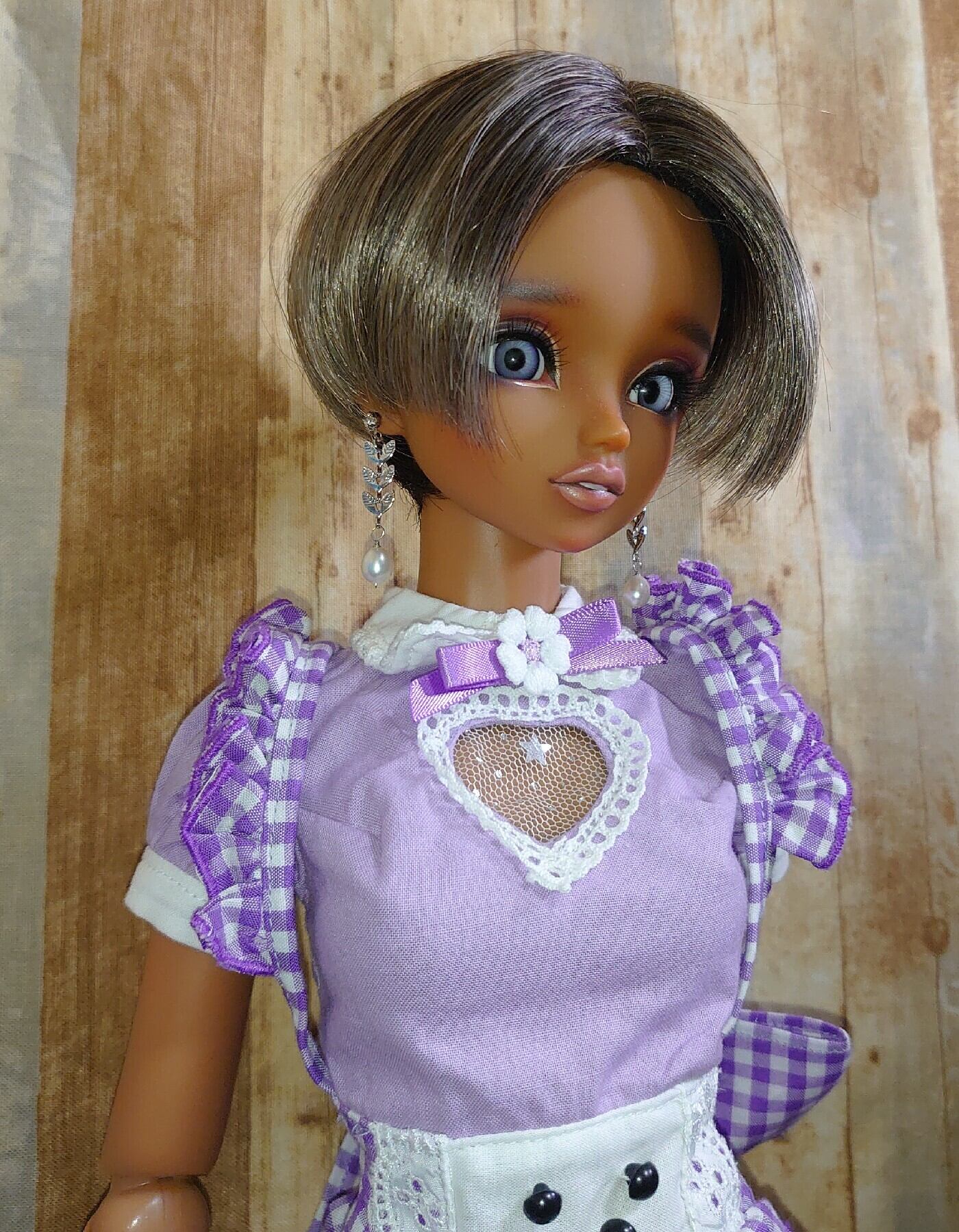 春の息吹きをテーマに、ドール用ネックレスと耳飾りのセットを製作いたしました。